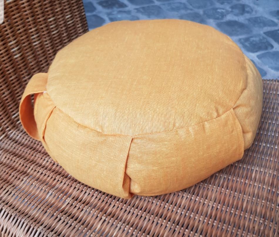 Ce magnifique coussin zafu en coton éthique tissage Gandhi. Pour petit gabarit. Assise de 28 à 34 cm. Hauteur 13cm