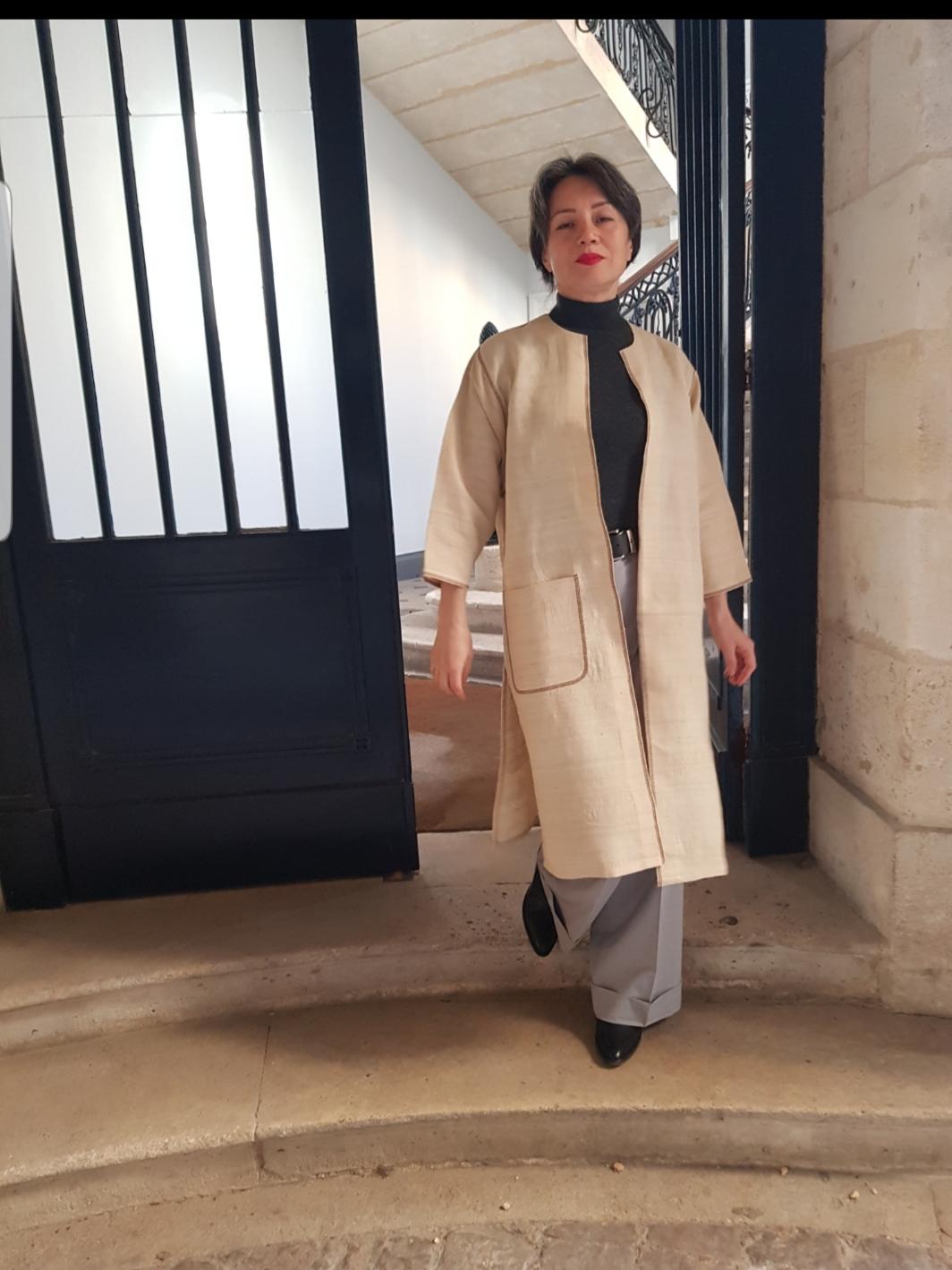 KIMONO / MANTEAU OU ROBE TUNIQUE D'INTERIEUR . EN PURE SOIE VEGAN ET ETHIQUE. FILATURES GANDHI. SOIE EPAISSE,SOIE SAUVAGE, AVEC UN BEAU TOMBER .